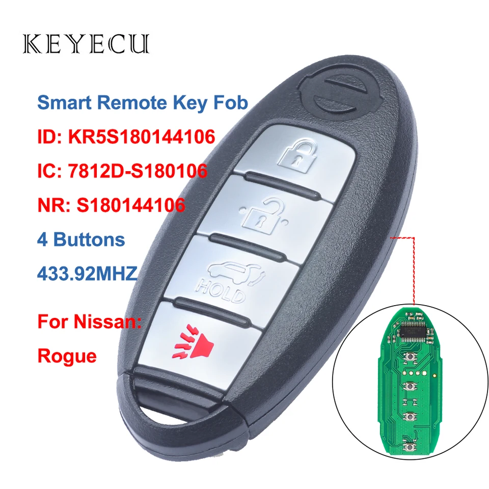Keyecu 2pcs For Nissan Rogue 2017 2018 2019 Remote Car Key Fob 5